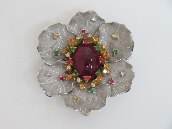 宝石買取 北名古屋市「田村俊一 ガーネット プラチナ・18金 ブローチ」お買取りさせて頂きました。